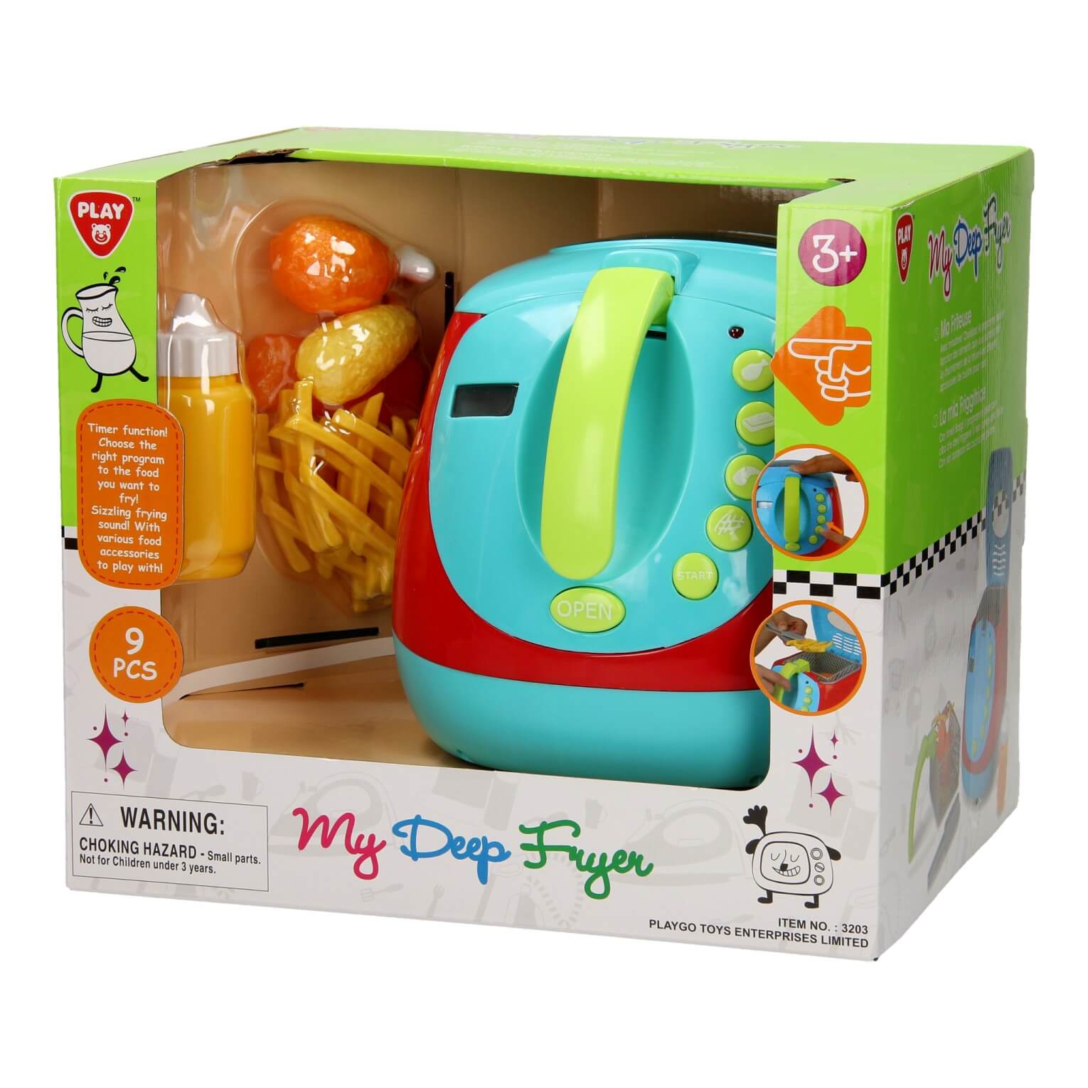 האם גם אתם אוהבים צ'יפס,נאגטס עוף ושאר חטיפים ? ואז הטיגון העמוק של פלייגו הוא באמת משהו בשבילך. הטיגון העמוק משמיע קולות טיגון אמיתיים ואפילו להגדיר תוכניות כך שלשמן תהיה הטמפרטורה הנכונה לטגן בו את הנגיסה שלכם. הטיגון העמוק של פלייגו מורכב מ -9 חלקים עשויים פלסטיק יציב. פועל על 3 סוללות AA (כולל סוללות).