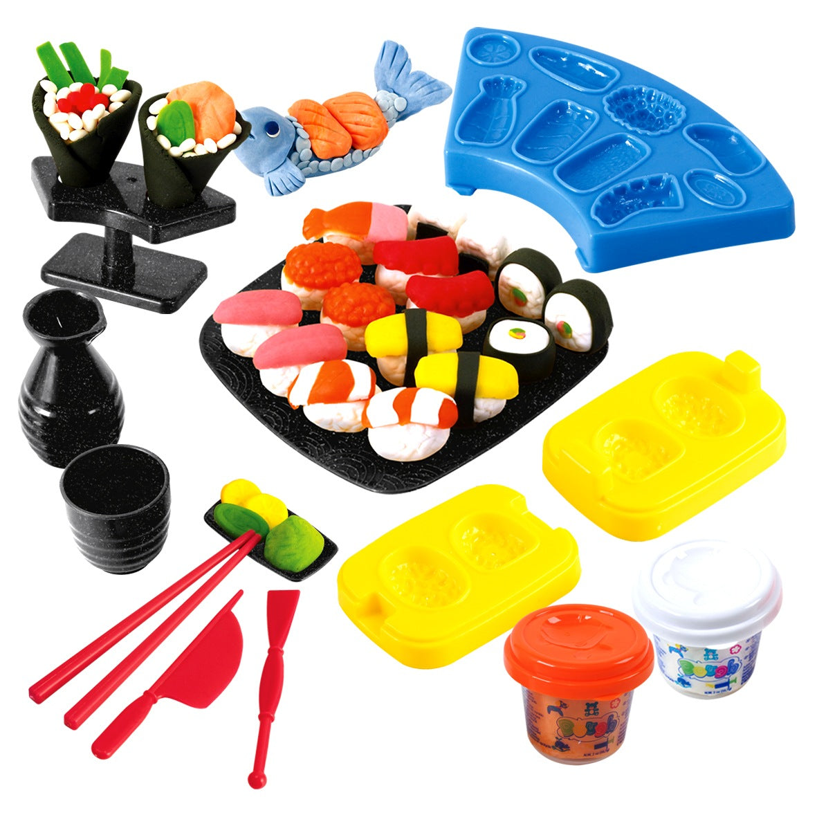 ערכת בצק להכנת סושי כוללת אביזרים שונים אשר יעזרו לכם לעצב סוגי סושי שונים לפי העדפותיכם. זהו צעצוע שיכול לקדם את התפתחות הילדים בדרכים רבות. פיתוח ידיים ואצבעות, פיתוח הקשר העצבי בין העיניים והידיים ופיתוח יצירתיות ודמיון. לאחר המשחק יש לשמור את הבצק במיקום מתאים להארכת חיי המדף שלו, כך שניתן יהיה להשתמש בו בפעם הבאה. כולל 2 צבעי בצק. מתאים לגילאי 3+ . ארץ ייצור: סין. גודל המוצר בס"מ: 17*6*22.