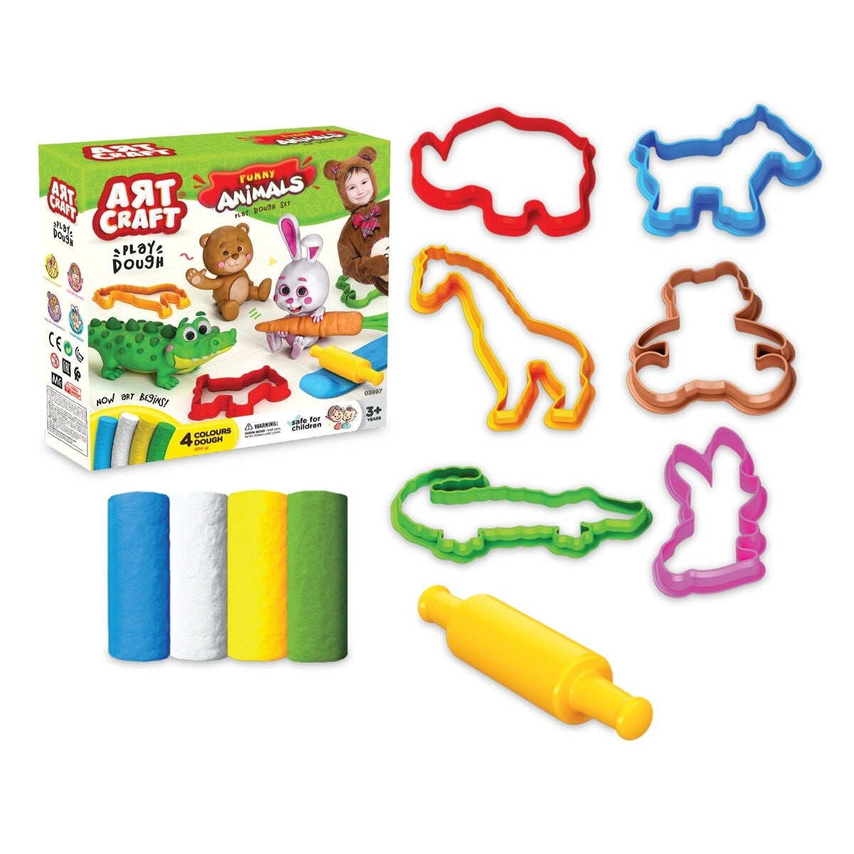 ערכת בצק לעיצוב ויצירה- חיות של המותג ART CRAFT מבית FEN TOYS. הערכה כוללת גלגלת, 4 צבעים שונים של בצק במשקל כולל של 200 גרם ו-6 שבלונות. • מאפשר לילדים לעצב, ללוש וליצור בעלי חיים שונים. עם הבצק אפשר להשתמש גם ליצור צורות ואובייקטים שונים אחרים ללא הגבלה. הבצק אינו מלכלכך ואינו נוזלי. ניתן לעיצוב מחדש שוב ושוב. הבצק עשוי מחומרים באיכות מעולה, רכים, נעימים למגע ובטוח לשימוש! • ניתן לערבב צבעים שונים כדי לקבל יותר צבעים • יש לאחסן במקום קריר. • אם המסה התקשתה, אפשר להוסיף מעט מים ולערבב היטב. השבלונות עשויות מפלסטיק יציב ואיכותי. מתאים לילדים מגיל 3 שנים ומעלה.