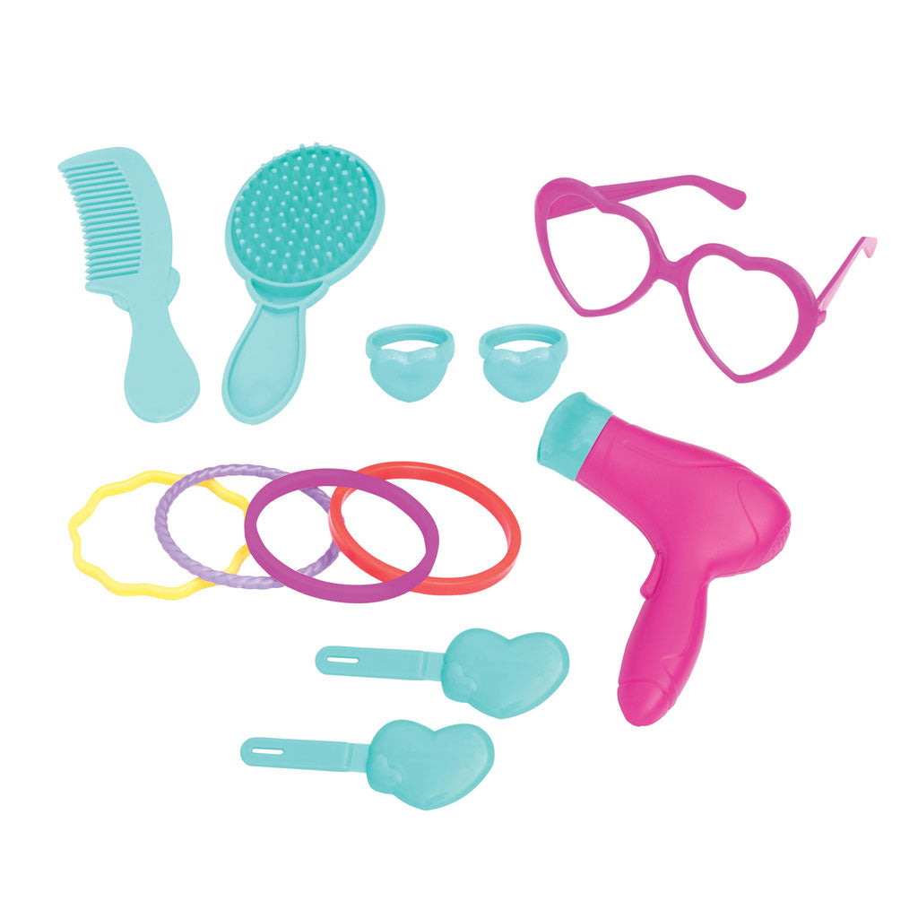 ערכת יופי במזוודת טרולי בצבע ורוד. מזוודת הטרולי עם 2 הגלגלים כוללת עמדת יופי ואביזרים כגון : מראה, פן, מברשת, מסרק, טבעות, משקפיים ועוד... ניתן לאחסן הכל בתוך מזוודת הטרולי ולקחת אותה בקלות ממקום למקום באמצעות ידית הטרולי והגלגלים המובנים. תורם לפיתוח מיומנויות מוטוריות של הידיים, תיאום קשר עין-יד, מיומנויות משחק, מוטוריקה עדינה, יכולת הריכוז ומודעות הטיפוח העצמי. עשוי מפלסטיק יציב ואיכותי. מידות אריזת המוצר : 12.5*35.5*23.5 ס"מ. מתאים לילדים מגיל 3 שנים ומעלה.