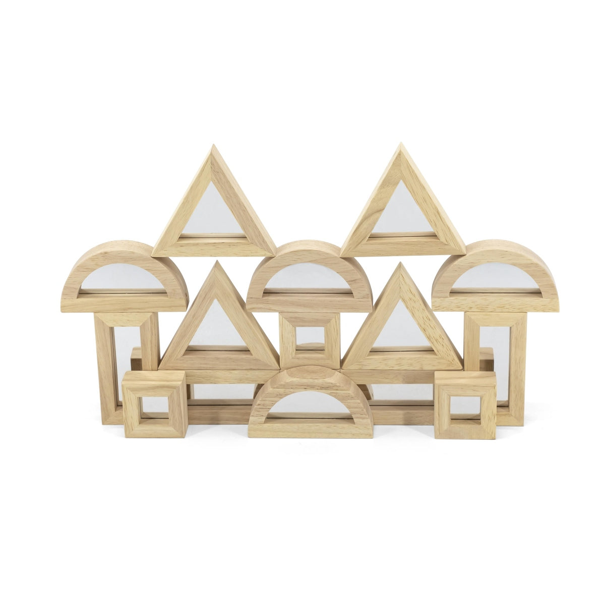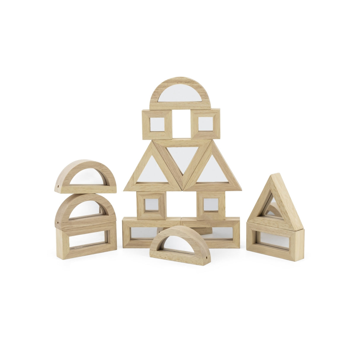 המשחק מכיל 16 בלוקים מראה דו צדדיות מעץ, בצורות שונות- מלבן, מרובע, משולש וחצי עיגול. המשחק מלמד את הילד צורות ומשפר תיאום עין - יד, מספק אינסוף הזדמנויות ליצור ולבנות. המראה מגבירה את המודעות והביטחון העצמי של הילד. מיוצר בסין. מתאים לגילאי: 18+ חודשים. מידות האריזה בס"מ: רוחב: 28.7  עומק: 6.6 גובה: 27.7. חומר: עץ.