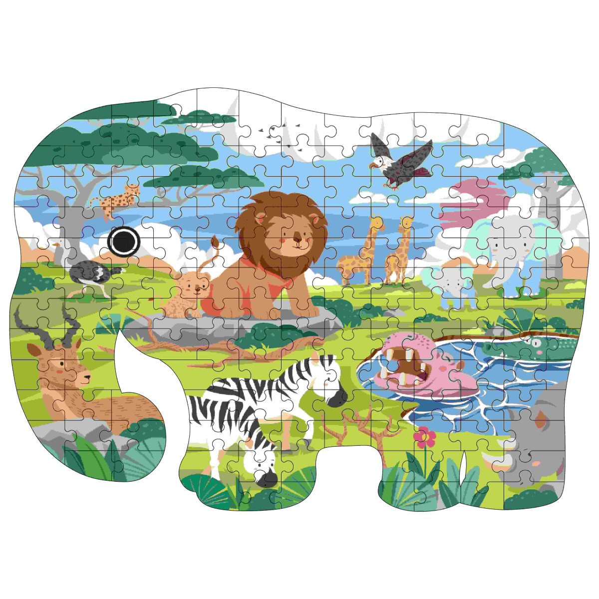 פאזל חיות גונגל 150 חלקים. גודל הפאזל : 35.6*48.7 ס"מ. בהרכבת הפאזל מתרגלים הילדים מיומנויות של פיתוח חשיבה לוגית, קואורדינציה חושית, תיאום קשר עין-יד, פתרון בעיות, זיהוי צורות, זיכרון ומיומנויות קוגניטיביות. אפשר להרכיב את הפאזל לבד אם עם החברים והמשפחה ככה שתוכלו גם ליהנות מזמן איכות משותף תוך כדי משחק ולמידה. קל לנשיאה: ארוז בקופסת מתנה עם רצועת נשיאה, נייד, מותאם גם לנשיאה מחוץ לבית ומאפשר לילדים ליהנות ממנו בכל מקום. זוהי מתנה מושלמת: ידידותית לילדים עם פינות מעוגלות לבטיחות מרבית. זוהי בחירה אידיאלית למשחק אינטלקטואלי. מתאים גם כמתנה או להפעלה בימי הולדת ואירועים מיוחדים. עשוי מקרטון איכותי, אינו רעיל, חלק ועמיד. הצבעים עמידים גם לאחר איחסון ממושך. מתאים לילדים מגיל 3 שנים ומעלה. מיוצר בסין. מידות האריזה: 6.8*20*18 ס"מ