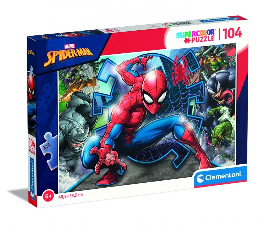פאזל ספיידרמן מרהיב עם 104 חלקים של חברת Clementoni האיכותית.