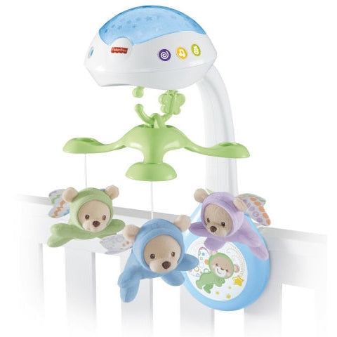 מובייל פרפר 3 ב-1, הכולל בתוכו מקרן תקרה המסוגל להקרין כוכבים מרגיעים על תקרת הבית. בעל 3 פרפרים צבעוניים, רכים ומלטפים ו-3 מצבי מוזיקה משתנים. כולל שלט רחוק מפעיל מחדש את התנועה. ניתן להשתמש לעריסה תינוק, עגלה, סלקל. לגילאי 0 ומעלה.