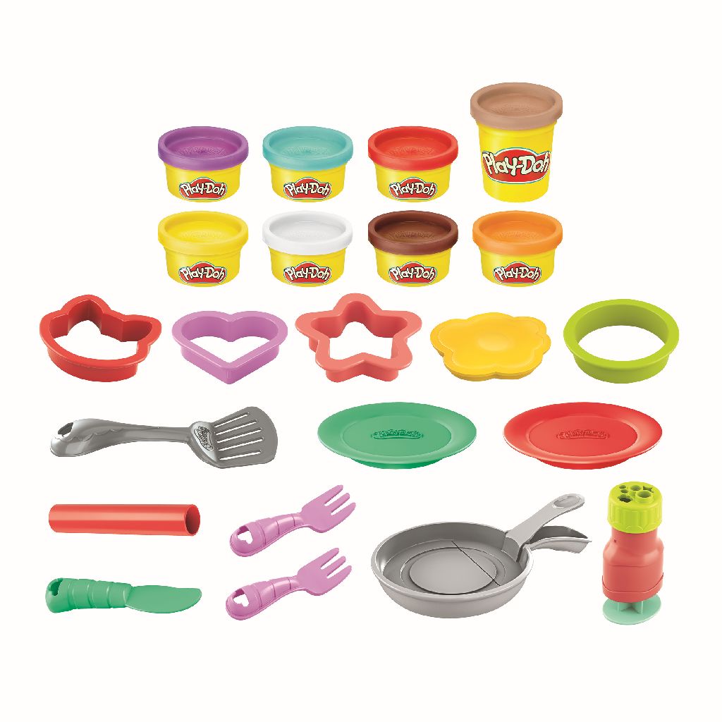 משחק בצק מבית המותג המוביל והאיכותי Play-Doh! מצויין לפיתוח חשיבה, יצירתיות, הפעלת דימיון והמוטוריקה העדינה. ערכת פנקייקים, כוללת 8 צבעים שונים ומגוון אביזרים מגניבים. בואו להפוך לאלופי הפנייקים! הקפיצו באוויר את הפנקייקים בלחיצת כפתור אחת במחבת, ערמו אותן על הצלחות ופנקו מלמעלה בסירופ ותוספות מגניבות. מומלץ לשימוש מגיל 3.