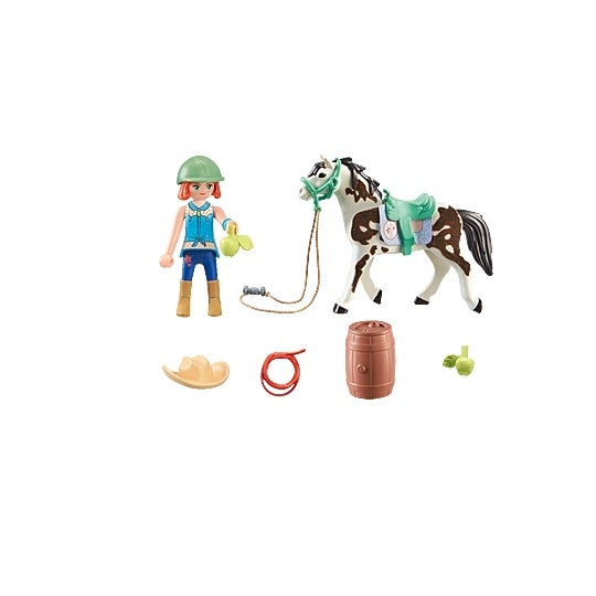 התשוקה הגדולה ביותר של אלי היא רכיבה במערבון. סוסת סוס ההליכה בטנסי שלה, שמעילה צפוף, אוהבת גם היא את האתגר של עבודה עצמאית ככל האפשר ולהגיב רק למשקל הקל ביותר ולעזרת הרגליים של אלי. כדי להפחית את ההשפעה על נסורת על המושכות, אלי רוכבת ביד אחת - כמו בוקרת אמיתית! במהלך אימוני הרכיבה השניים עושים מספר הקפות סביב חבית. עובדה מהנה: משפחתה של אלי גרה במפל הכי הרבה זמן, אז היא מכירה את הסביבה של החווה כמו את כף ידה. מתנה או מזכרת נהדרת לילדים חובבי סוסים מגיל 5 ומעלה. חומר-פלסטיק.