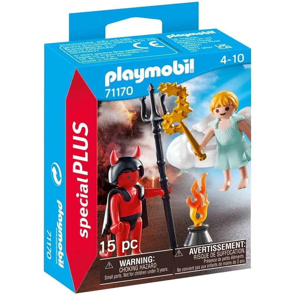 הם אולי נראים שונים מאוד מבחוץ, אבל למעשה מלאך ושטן הם חברים טובים. היום הם נפגשים שוב לשיחה קטנה. בזמן שהשטן מתחמם ליד האש, המלאך מתיישב על ענן נעים. מתנה נהדרת לילדים מגיל 4 ומעלה. חומר-פלסטיק.