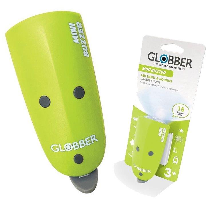 פעמון לאופניים אורות וצלילים- פנס משולב צופר. 3 סוגי תאורה. 15 סוגי מנגינות.4ב- צבעים שונים. גלובר הינו מותג הנמכר ביותר מ- 73 מדינות בכל רחבי העולם והינו מותג מוביל בשוק הקורקינטים העולמי. את המותג ניתן למצוא בעולם בחנויות מקצועיות וחנויות מתמחות בקורקינטים, ומאופיין ברכיבים אשר הופכים אותו למוצר HIGH END. המותג GLOBBER מתאפיין בחדשנות, באמינות, עיצוב ופונקציונאליות ההופכים את מוצריו למובילים בשוק. GLOBBER הינו בעל פטנט ייחודי בעולם- "מנגנון נעילת היגוי", אשר מאפשר לנעול את ההיגוי של הכידון כך שהילד לא יוכל לפנות שמאלה וימינה ומיועד לילדים בגיל צעיר מאוד שרק מתחילים ללמוד לרכב. כפתור זה מאפשר בשלב מאוחר יותר לשחרר את "נעילת ההיגוי" כאשר הילד כבר בטוח ויכול לשלוט בקורקינט באמצעות שיווי המשקל.