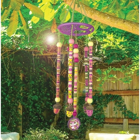 צבע את מקלות הבמבוק והבלוטים בעצמך כדי ליצור את הקישוט המקורי הזה ושמע את הרוח הקסומה מדברת ומנגנת בצלילי פעמונים.