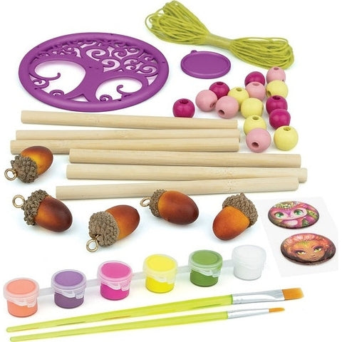 מכיל: 6 מקלות במבוק, 5 בלוטים מלאכותיים, בסיס תמיכה וקסם, 5 צבעי צבע, לכה נוצצת, 15 חרוזי עץ, 2 מברשות, 2 מכחולים, חוט שעווה, הסיפור של הזליה, הוראות צבע.