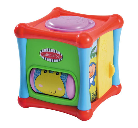 קוביית פעילות צבעונית ומלאת עניין עם מגוון משחקים לפיתוח חושי ומוטורי.