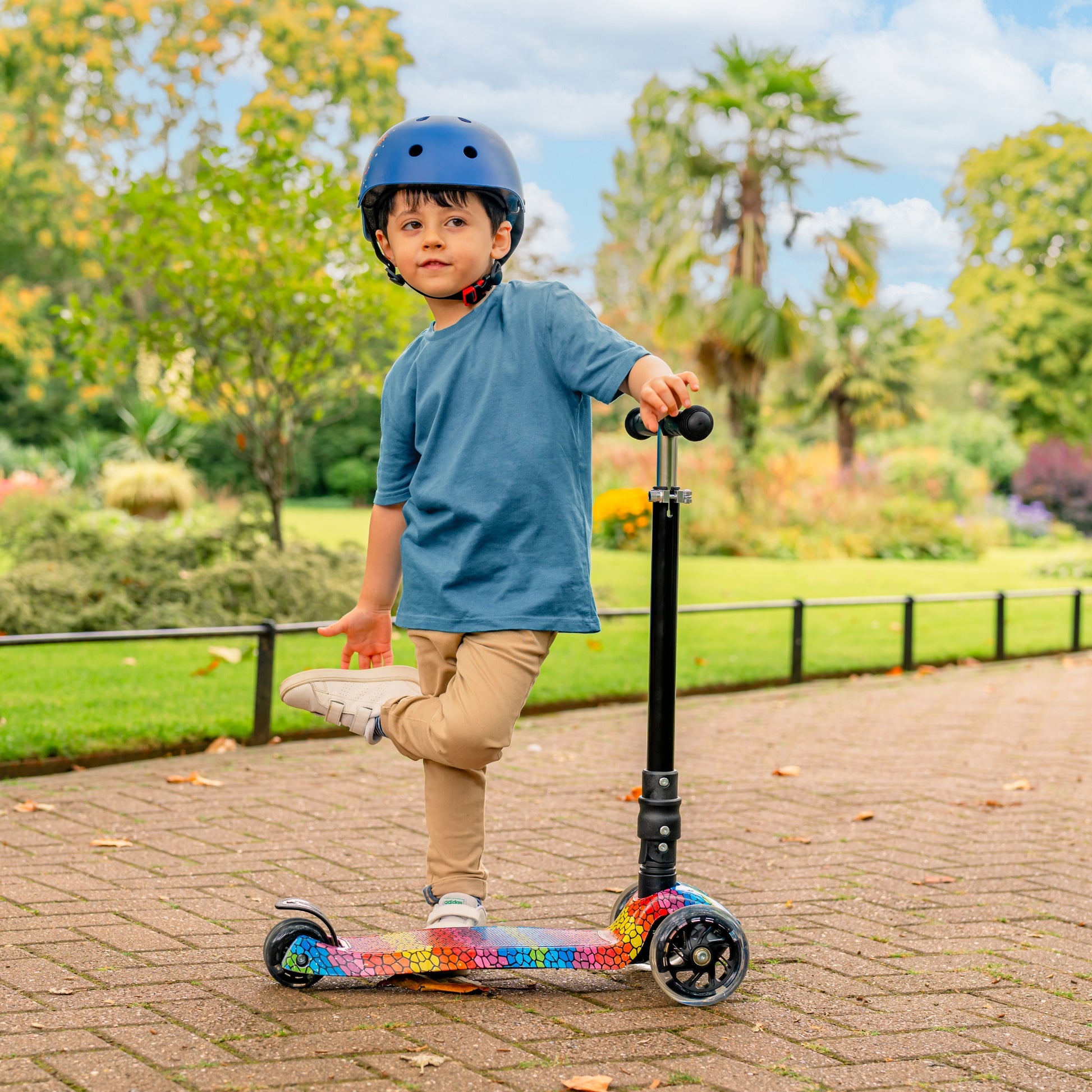 קורקינט 3 גלגלים קריסטלים - מתקפל אידאלי לאחסון קל, מתאים לילדים צעירים מתחילים, מטפח איזון ויציבות. עם אורות מהבהבים בהירים (מלפנים ומאחור) ובלם דריכה חזק, הקורקינט הקטנטן בעל 3 הגלגלים לא מתפשר על בטיחות, פונקציונליות או סגנון. משקל מרבי: 50 ק"ג. גיל שימוש: 5-10 שנים.
