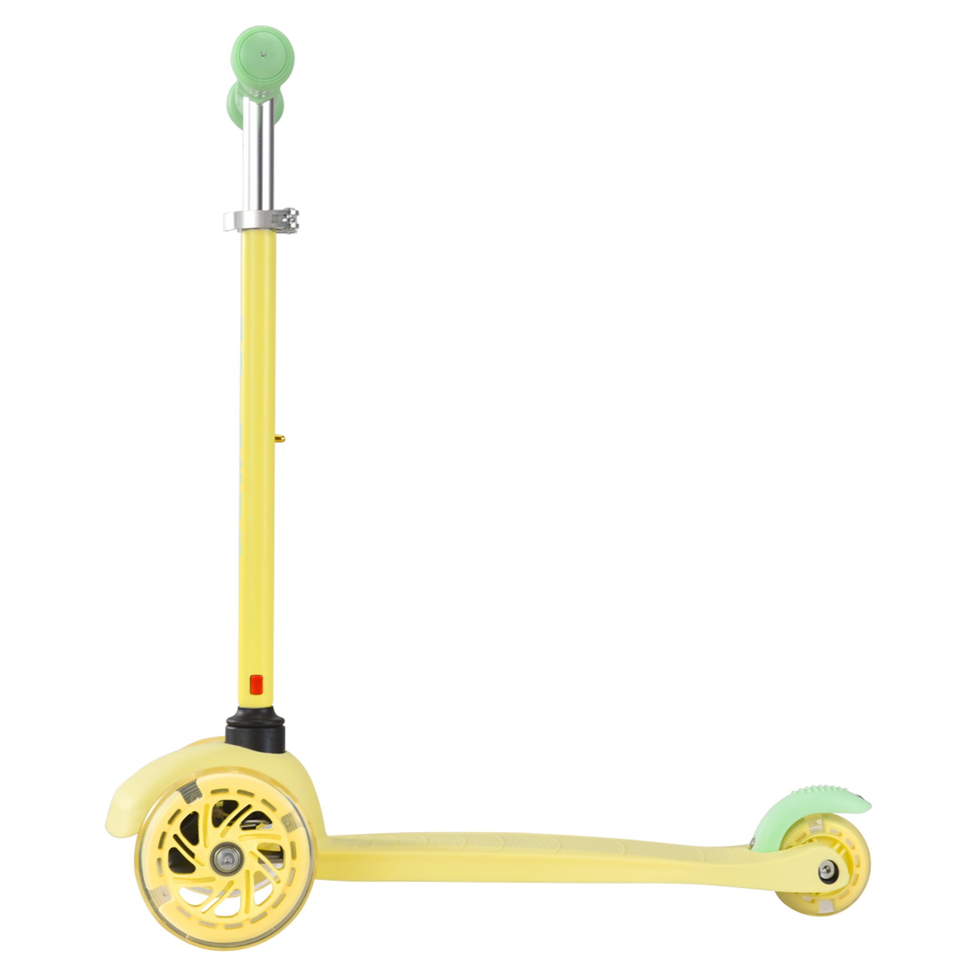 קורקינט צהוב בעל גלגלים זוהרים ומהבהבים וכידון נשלף עם כוונון גובה. רכיבה על 3 גלגלים מעודדת את ילדכם לפתח עצמאות ומיומנויות קואורדינציה. השלדה הקלה במיוחד (אך החזקה!) מאפשרת לילדים קטנים לעלות על הקורקינט בקלות. משקל מרבי: 20 ק"ג. גיל שימוש: 3-6 שנים.