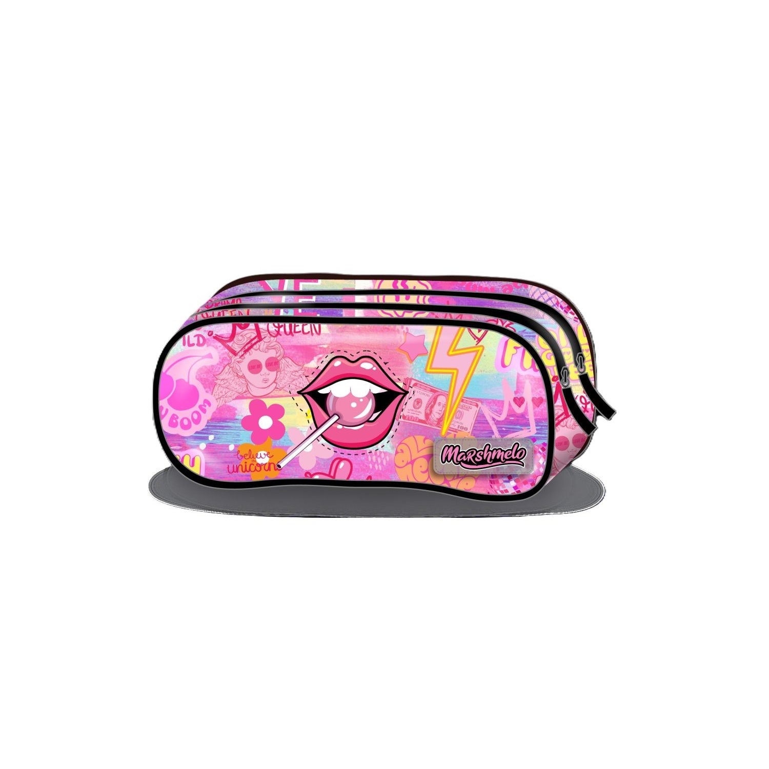 קלמר 2 תאים שפתיים עם סוכריה – מושלם לבית הספר וליום-יום! כולל שני תאים מרווחים לארגון יעיל של כל כלי הכתיבה, עיצוב צבעוני וייחודי שילדים אוהבים, ורוכסנים חזקים לשימוש נוח ועמיד לאורך זמן. אידיאלי לכל ילד שרוצה סטייל וסדר בתיק.