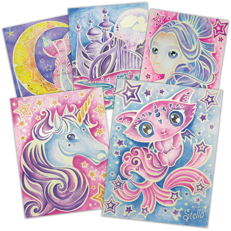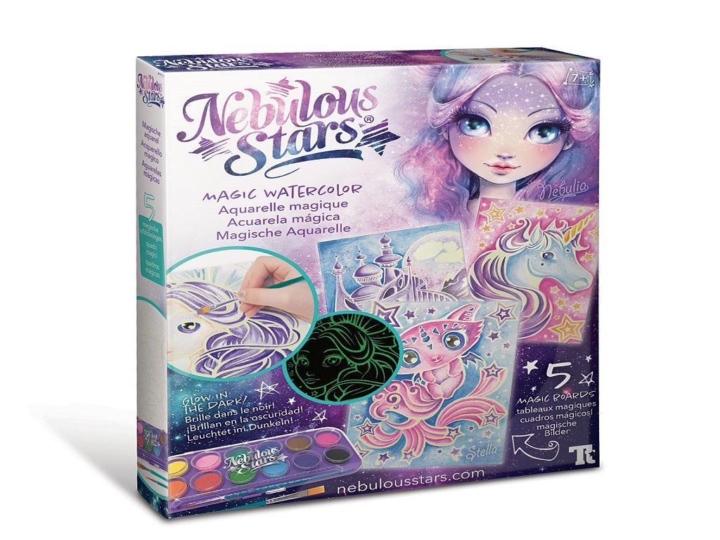ערכת יצירה של נבולוס סטארס – Nebulous Stars עם מגוון צבעי מים ו-5 לוחות קנבס זוהרים בחושך