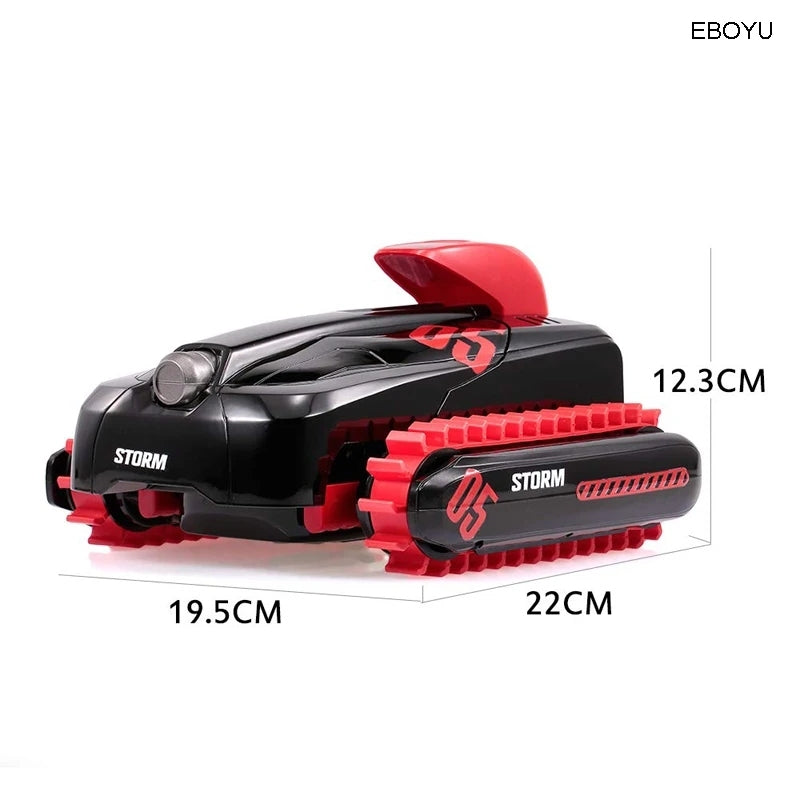 רכב אמפיבי עם שלט רחוק. דפורמציה אמפיבית. ביבשה- סיבוב של 360 מעלות. במים- משנה את הצורה לסירה. כיווני נסיעה: קדימה, אחורה, פנייה שמאלה וימינה. זמן משחק – עד 20 דקות. זמן המשחק במים הינו כ 30 דקות. מרחק שליטה: עד 35 מטר. זמן טעינה: 2.5 שעות. פועל באמצעות סוללת ליתיום פנימית 7.4V בטעינת USB (כלולה) ו-2 סוללות AA (אינן כלולות – ניתן לרכוש בנפרד). שלט רחוק איכותי הפועל על תדר 2.4 גיגה-הרץ לשליטה קלה ונוחה. לגילאי 3 שנים ומעלה. ארץ יצור – סין. חומר – פלסטיק. מידות האריזה: 34.2X26.2X20.2 ס"מ גודל המוצר: 34.2*26.2*20.2 ס"מ