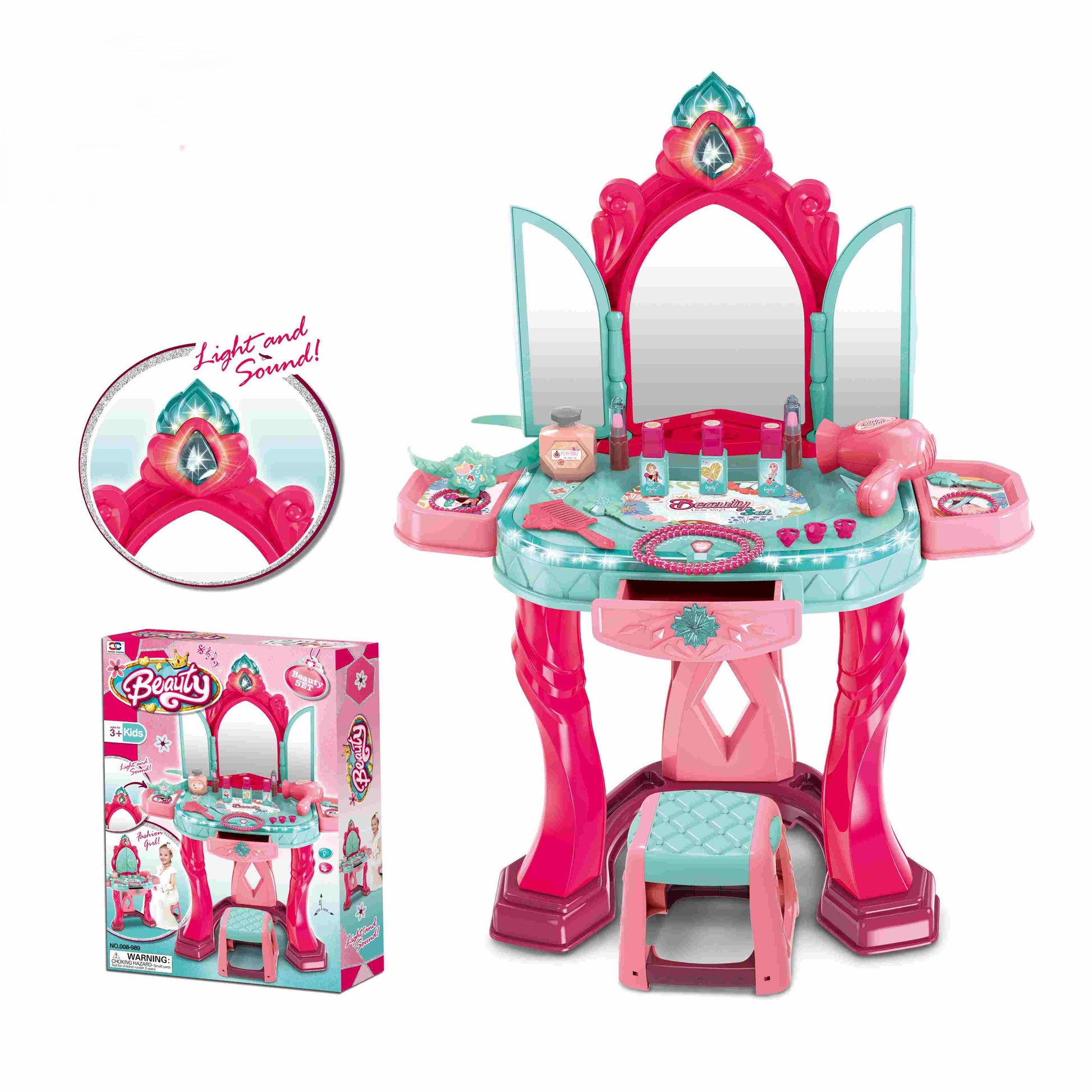 שולחן איפור עם דלתות נפתחות אורות וצלילי