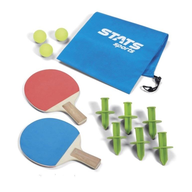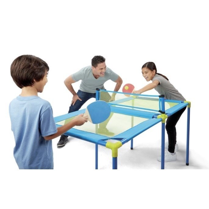 שולחן פינג פונג נייד העשוי מרשת אלסטית הכולל 2 מחבטים ו – 3 כדורים. ניתן להרכיב את השולחן בקלות.