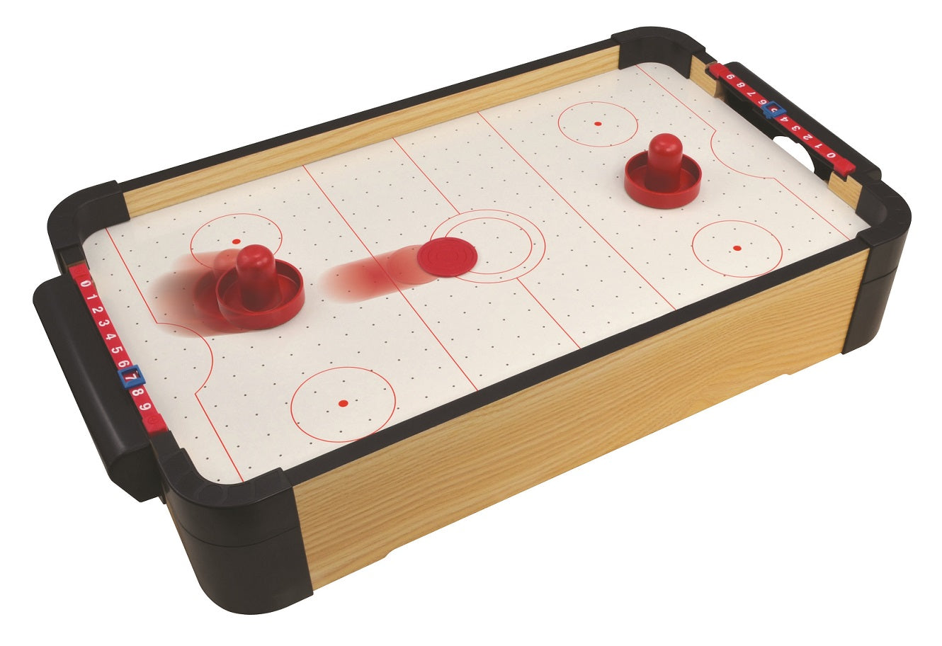 משחק הוקי אוויר שולחני באורך 50 ס"מ עשוי מעץ איכותי. מתנה נהדרת לכל אירוע! נדרשות 8 סוללות AA (לא כלולות - ניתן לרכוש בנפרד). ארץ ייצור: סין. מתאים לגילאי: 3+. גודל המוצר (ס"מ): 51*30*10.