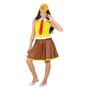 תחפושת בובספוג לנערות משלבת בין הדמות האהובה ללוק טרנדי ומחמיא. התחפושת כוללת שמלת מיני צהובה עם הדפס הפנים האייקוני של בובספוג, צווארון לבן ועניבה אדומה מובנית, המעניקה מראה של "מכנסיים מרובעים" בגרסה נשית וקלילה.