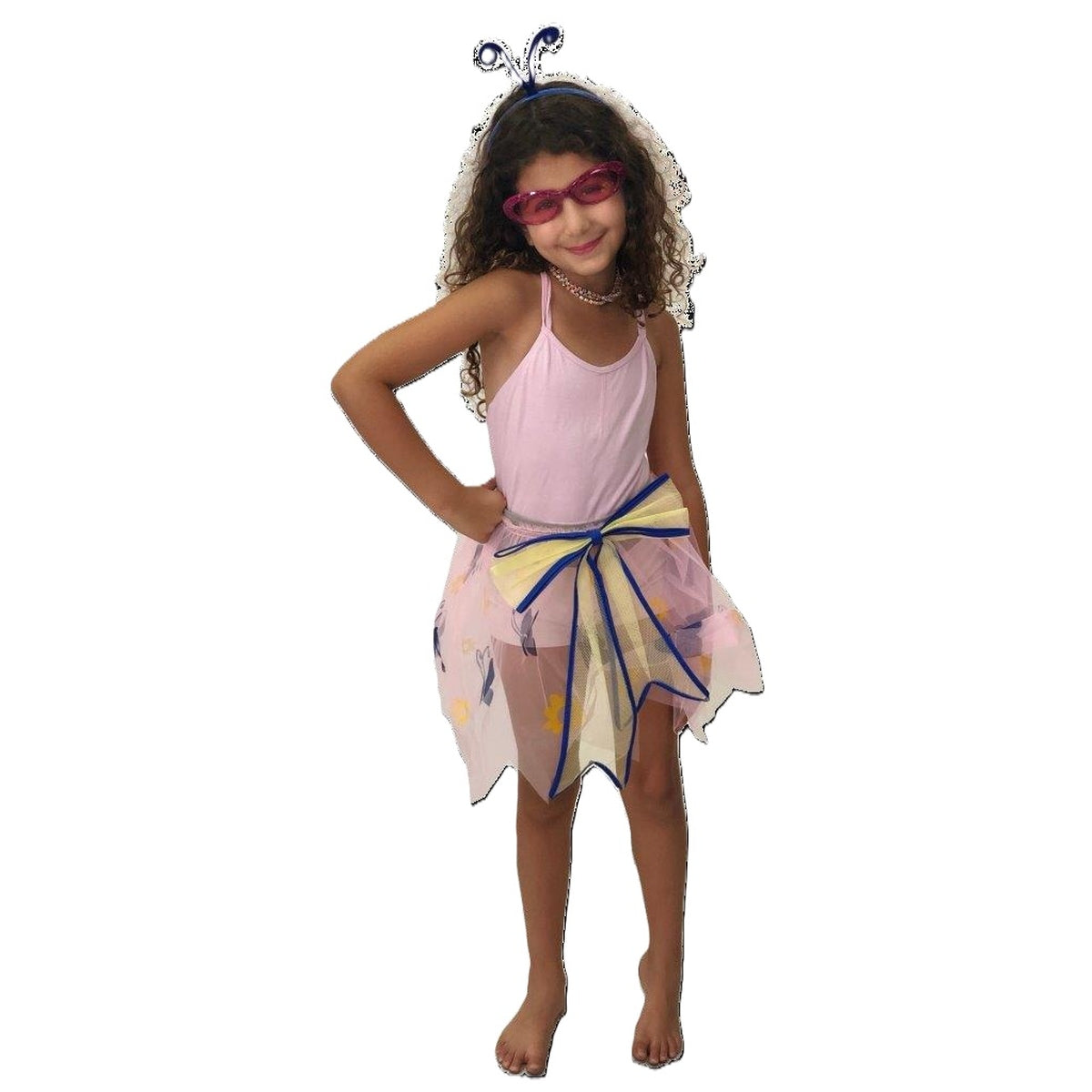 תחפושת פרפר צבעונית ומתוקה הכוללת חצאית וקשת תואמת עם מחושים.