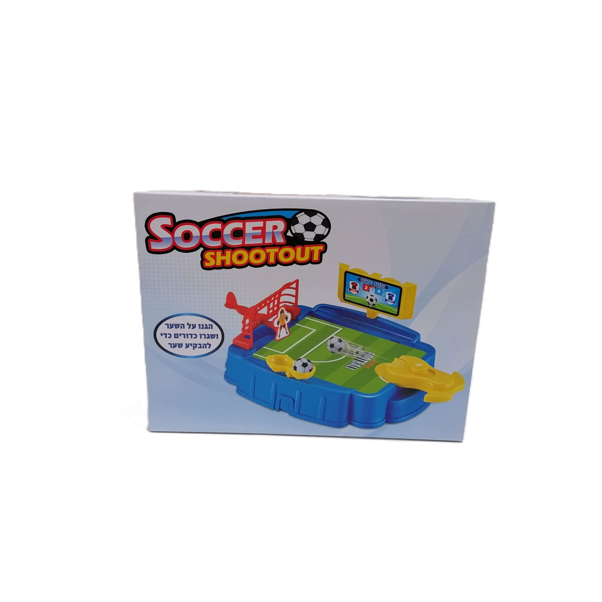 להבקיע שער. תכולה: אצטדיון כדורגל, רשת כדורגל עם שוער, 2 כדורי כדורגל,